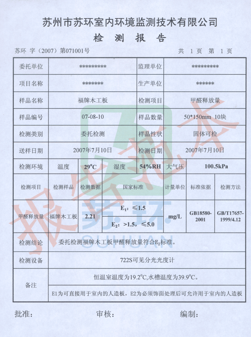 依据 《装饰装修材料人造板及其制品中甲醛释放限量》 GB18580-2001标准检测人造板材中:①甲醛释放量;