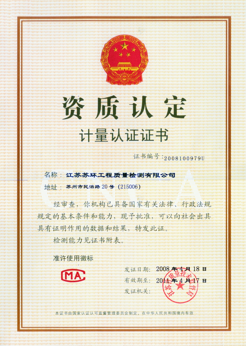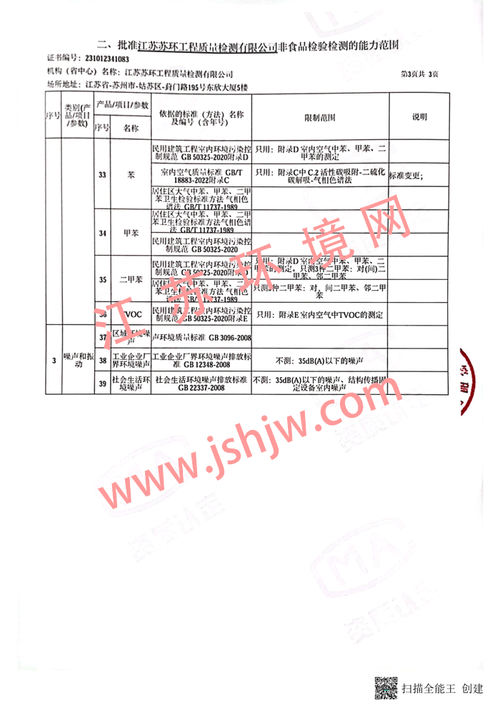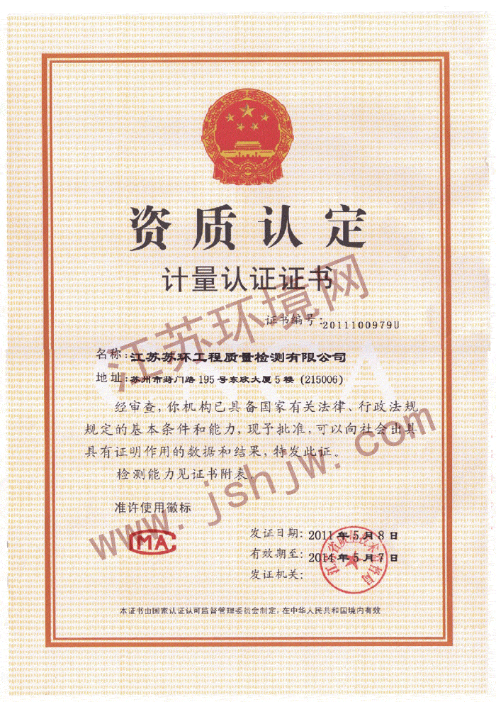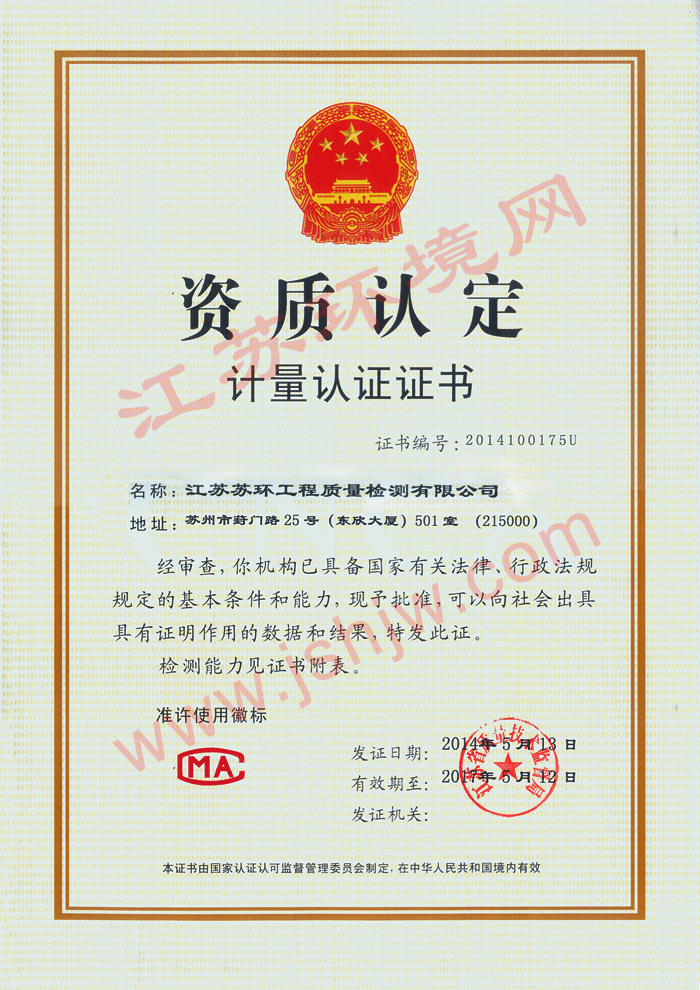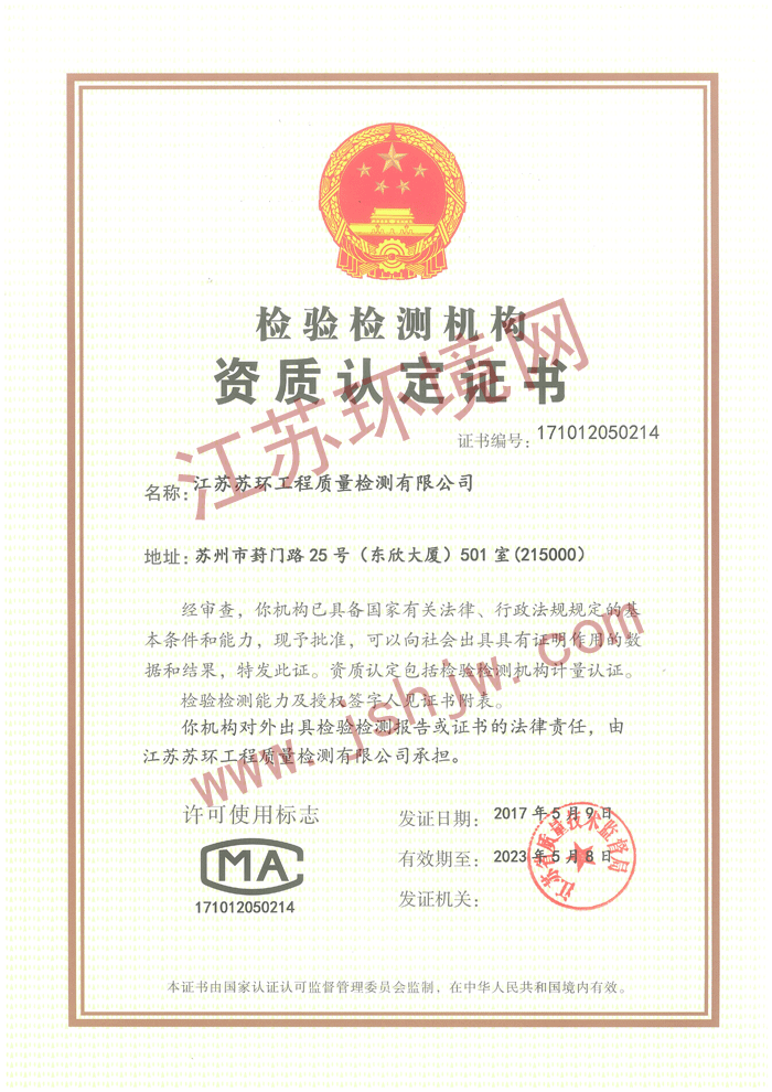 - 资质类型:CMA 认证(省级资质认定)- 证书编号:231012341083